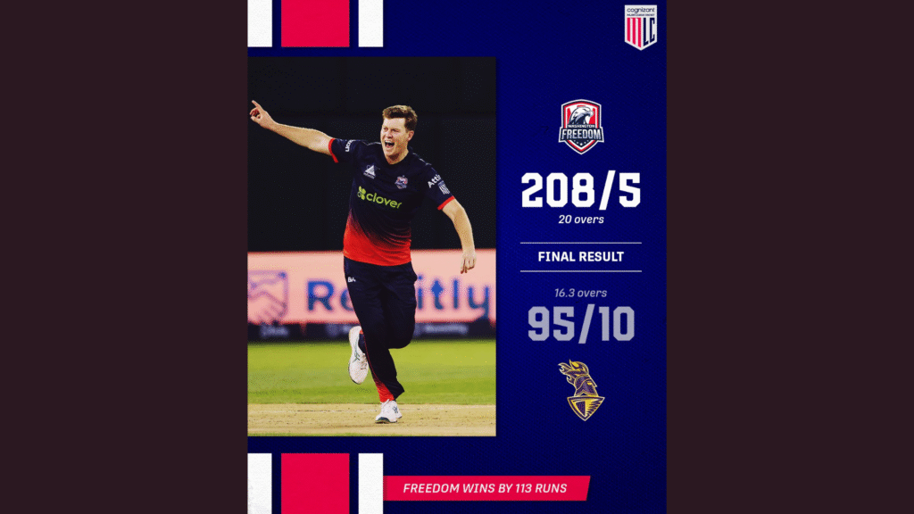 Guided by Glenn Maxwell’s explosive century and Mitch Owen’s comprehensive performance, Washington Freedom dealt Los Angeles Knight Riders their third