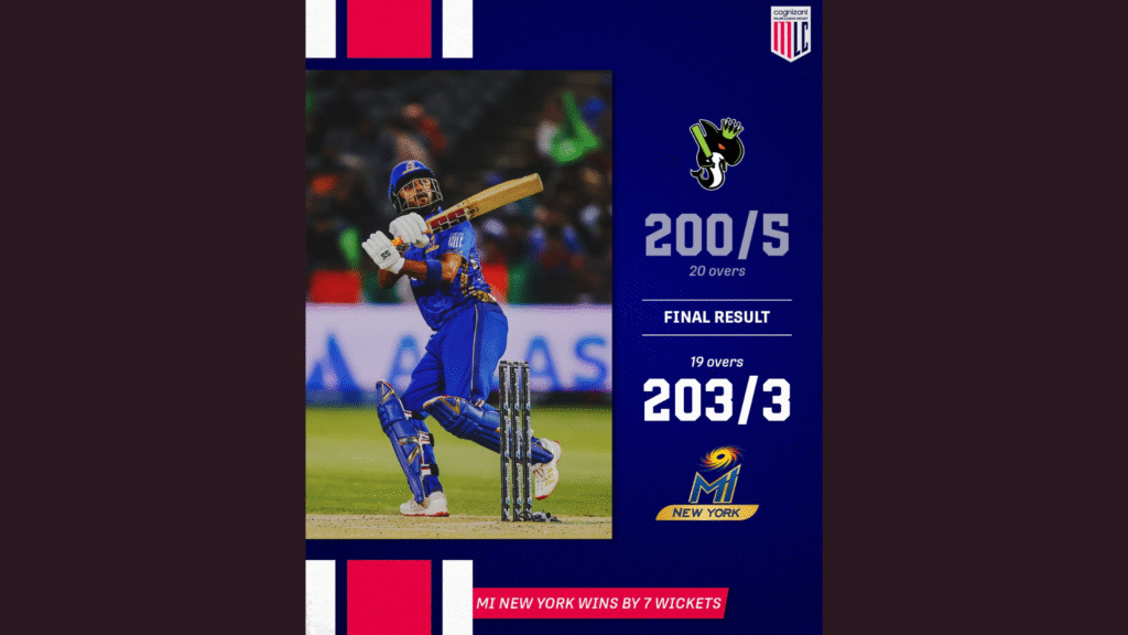 Following a tense victory against MI New York, Texas Super Kings secured their second consecutive win in MLC 2025 thanks